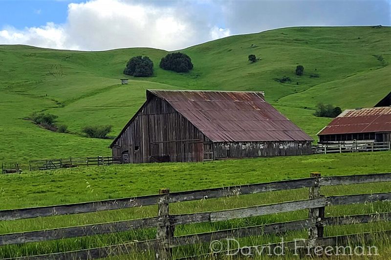 SKU VP333 Category Rustic and Nostalgic Tags serene, clouds, California, spring, green hills, old barn